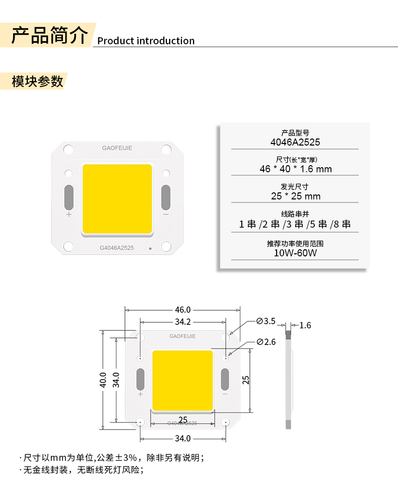◇ 固晶厚度薄,散熱更好,超低熱阻,耐高壓,可通大電流使用